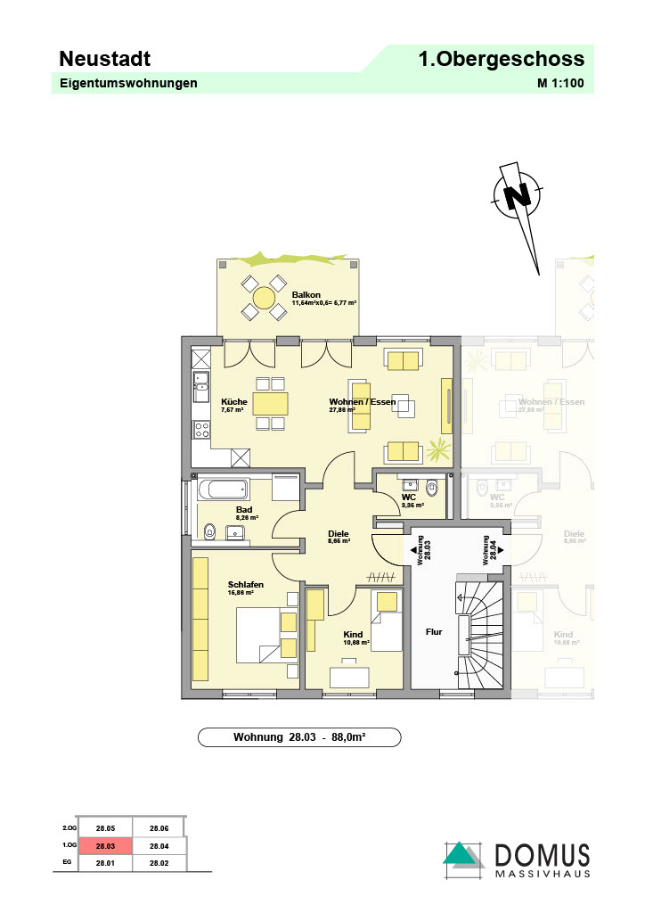 Die Wohnungen in den Mehrfamilienhäusern „Im Schelmen 21-27“ verfügen über Tiefgaragen, Aufzug und große Terrassen oder Balkone. Sie zeichnen sich weiter aus durch eine hochwertige Ausstattung, lichtdurchflutete Räume und großzügige, moderne Grundrisse.